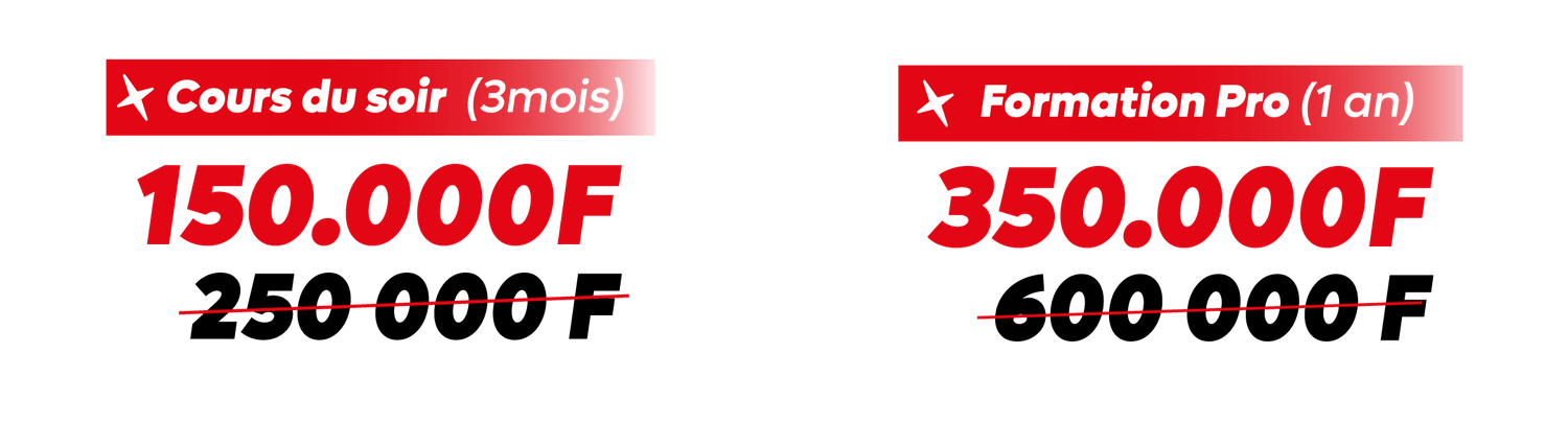 Une fois l’inscription et la scolarité payées, tout est inclus, sauf les frais de soutenance en fin de parcours (75.000 F) pour les formations professionnelles uniquement.